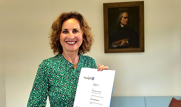 Das Institut für Gesang | Musiktheater der Hochschule für Musik FRANZ LISZT Weimar erhält zum 1. Oktober 2024 kompetente Verstärkung: Die Sopranistin und Gesangspädagogin Marietta Zumbült wurde heute von Präsidentin Prof. Anne-Kathrin Lindig zur Honorarprofessorin für Gesang bestellt. Bereits seit vielen Jahren war sie als Lehrbeauftragte im Gesangsinstitut im Beethovenhaus Belvedere in Weimar aktiv.