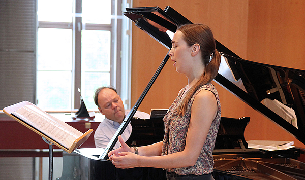 Weiter geht es am Mittwoch, 18. Juni um 19:30 Uhr im Saal Am Palais mit einem Konzert der englischen Liedklasse, die zuvor drei Tage lang mit Gastprofessor Richard Stokes von der Royal Academy of Music in London gearbeitet hat. Im Abschlusskonzert des Meisterkurses singen Studierende u.a. Lieder von Britten, Gurney, Butterworth, Warlock und Ireland.