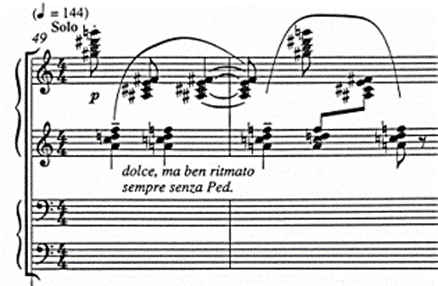 Die Bezeichnung der dritten Episode CANTO LONTANO bedeutet Gesang aus der Ferne.11 Nach der sehr lebendigen zweiten Episode ist sie der ruhige Abschlussteil des Stücks. Das berühmte b-a-c-h-Motiv wird immer deutlicher hörbar ab Takt 154: