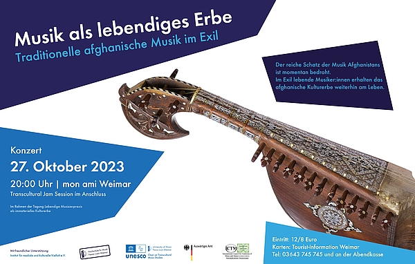 Da der reiche Schatz der Musik Afghanistans momentan bedroht ist, erhalten im Exil lebende Musiker*innen ihr afghanisches Kulturerbe weiterhin am Leben und bringen ihre Musik in europäischen Sälen zum Klingen. Sie zeigen auf, dass die afghanische Musik trotz der Einflüsse aus der persischen, indischen und zentralasiatischen Musikkultur auch ein eigenes Gepräge aufweist. Die internationale Tagung „Lebendige Musizierpraxis als immaterielles Kulturerbe“ findet in Kooperation mit dem Deutschen Nationalkomitee im „International Council for Traditional Music“ (ICTMD-Deutschland) statt – und mit dem Konzert wird passend zum Tagungsthema die lebendige Musizierpraxis Afghanistans im Exil gefeiert.