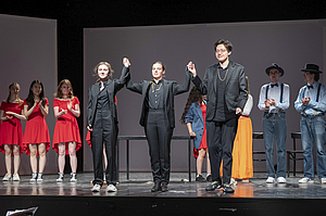 In our own studio theatre with an orchestra pit, our students rehearse and perform under real conditions: with lighting, technology, costumes and an audience. From their first year onwards, they regularly appear on stage – in university productions, as part of the Thüringer Opernstudio or in cooperation with renowned theatres in the region.