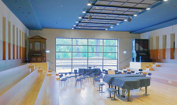 In addition to the Walcker organ and the Kotykiewicz organ harmonium, there is also an Ott organ (1968) in the choir hall of the Music High School. The installation of a large three-manual concert organ in the concert hall is also planned for 2025. This concept, which combines tradition and innovation, is generously supported and made possible by Dr Brigitte Seebacher.