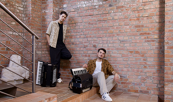 Duo member Marius Staible is currently completing his concert exam with Professor Buder, while his fellow student Daniel Roth is already an alumnus of the Weimar accordion class.