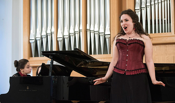 Gesangsabsolventin Polina Artsis und Klavierstudentin Elitsa Desseva singen und spielen Lieder aus dem "Hollywood Songbook"