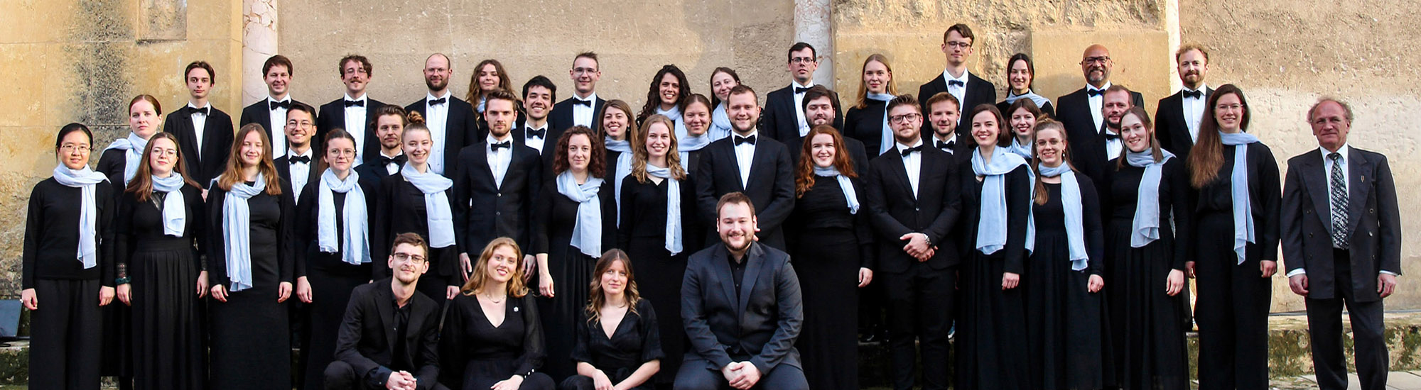 The Chamber Choir of the University of Music FRANZ LISZT Weimar is made up of students specialising in school music, church music and conducting, as well as students from neighbouring universities. It was founded in 1926 as the national Madrigal Choir by Walter Rein and quickly developed into one of the music university's top ensembles. Since 1997, the choir has been directed by Prof. Jürgen Puschbeck, who was once a member of the Dresden Kreuzchor himself. The chamber choir primarily performs a cappella literature from the 16th to the 21st century. It consciously gives space to works by Thuringian and Saxon composers, as well as premieres. In addition, vocal symphonies are an integral part of the repertoire: Bach's Passions, the B minor Mass, the Christmas Oratorio, Mozart's Requiem, Bruckner's E minor Mass, Brahms' Requiem and Liszt's Graner Mass are just a few examples. Here, as in other projects, the choir has worked with renowned conductors, including Kurt Masur, Fabio Luisi, Max Pommer, Helmut Rilling, Georg Christoph Biller, Ton Koopman, Konrad Junghänel and John Butt. Concerts have been recorded by MDR, HR, BR and ORF, and numerous CDs have been produced. Alongside its concert activities, the chamber choir is also committed to its aim of providing training for its own choral singing and choral conducting activities.