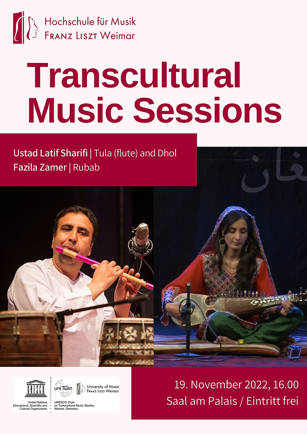 Recording of the concert "Sounds of the world – The worlds of sounds" on the occasion of the tenth anniversary of the UNESCO Chair on Transcultural Music Studies (TMS) on November 29th 2019 | Weimar, University of Music FRANZ LISZT Weimar, Festsaal Fürstenhaus