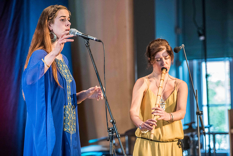 At this year's Rudolstadt Festival, 90,000 visitors came to make music and dance in the small Thuringian town and celebrated exuberantly at the largest folk-roots world music festival in Germany. The UNESCO Chair of the Institute of Musicology is represented every year and this year there were two concerts, a symposium and a workshop.