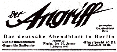 (Joseph Goebbels, in: Der Angriff, Gauzeitung der Berliner NSDAP, 6.12.1931, zit. nach Wolfgang Venohr: Dokumente Deutschen Daseins: 500 Jahre deutsche Nationalgeschichte 1445-1945, Athenäum Verlag, 1980, S. 291)