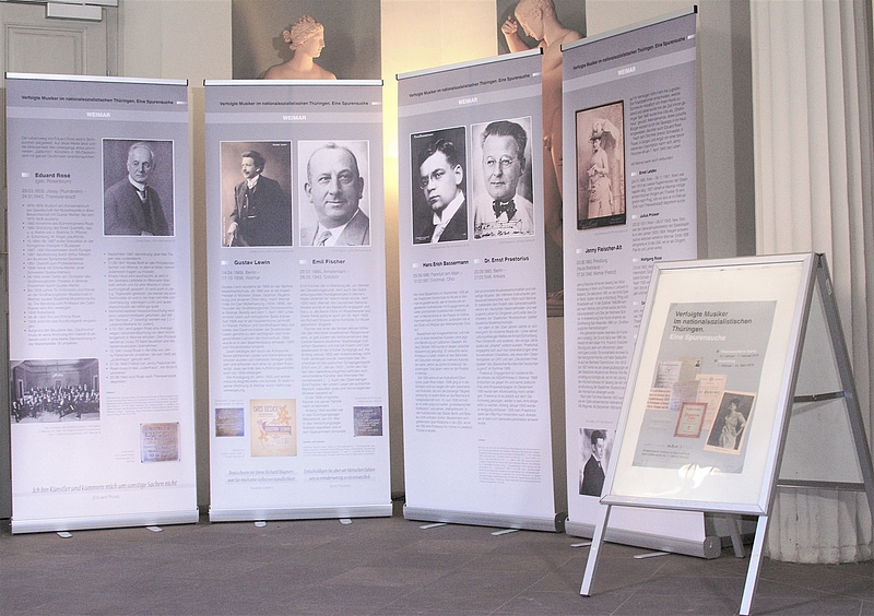 Die Ausstellung "Verfolgte Musiker im nationalsozialistischen Thüringen. Eine Spurensuche" wurde vom 15. November bis 31. Dezember 2019 an der Hochschule für Musik FRANZ LISZT Weimar präsentiert. → Nähere Informationen