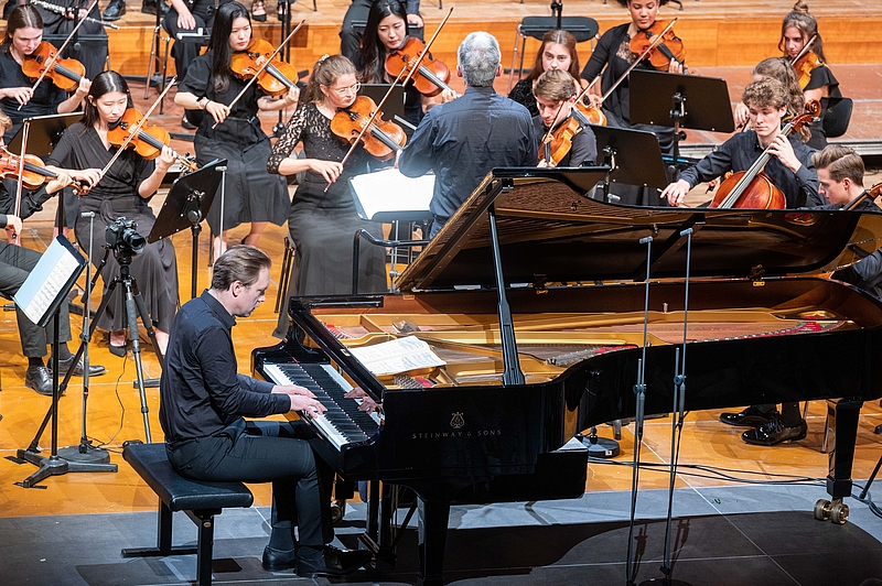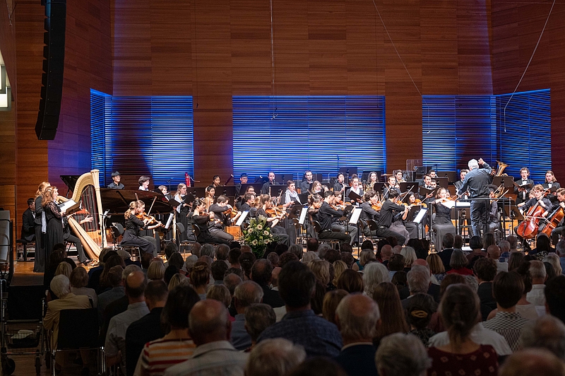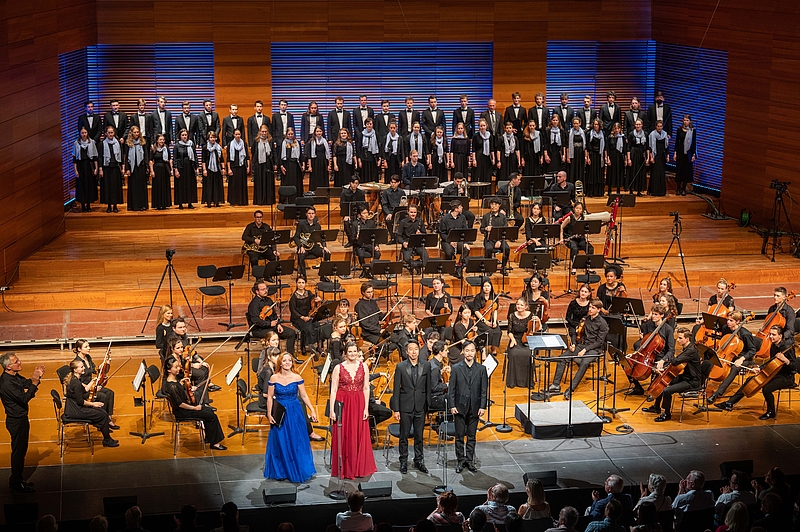 Am Abend wartet dann direkt nebenan in der Weimarhalle der nächste Höhepunkt. Das Festkonzert I verwöhnte die Zuhörer*innen hier mit Werken von Franz Liszt, Richard Strauss, Franz Schubert sowie einer Uraufführung eines Werks des Weimarer Kompositionsprofessors Michael Obst, vorgetragen von Kammerchor und Hochschulorchester unter der Leitung von Prof. Nicolás Pasquet.