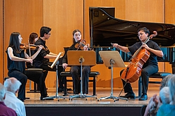 Musikalisch gab es hier schon die ersten Höhepunkte mit einem großartigen Harfenduo sowie einem außergewöhnlichen Klavierquartett. Zu hören waren Werke von Marcel Tournier und Gabriel Fauré.