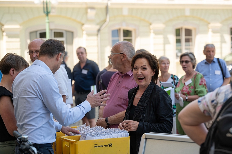 Ganz besonders machte diesen Tag natürlich auch die Einbettung in die Festwoche zum 150. Jubiläum unserer Hochschule. Aber der Reihe nach: Nach der Anmeldung und den ersten so vermissten Wiedersehensmomenten, versammelten sich die Alumni im Festsaal des Fürstenhauses, um vom scheidenden Hochschulpräsidenten Prof. Dr. Christoph Stölzl noch einmal begrüßt zu werden.
