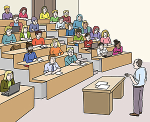 Lehrer, Studenten und Mitarbeiter aus unserer Hochschule arbeiten zusammen.