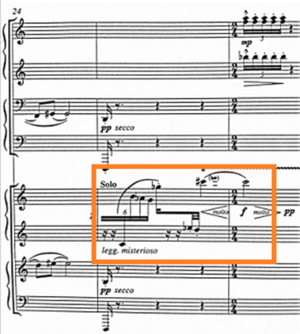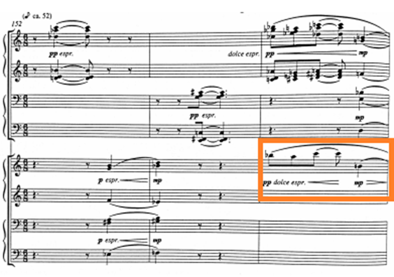 Die Bezeichnung der dritten Episode CANTO LONTANO bedeutet Gesang aus der Ferne.11 Nach der sehr lebendigen zweiten Episode ist sie der ruhige Abschlussteil des Stücks. Das berühmte b-a-c-h-Motiv wird immer deutlicher hörbar ab Takt 154: