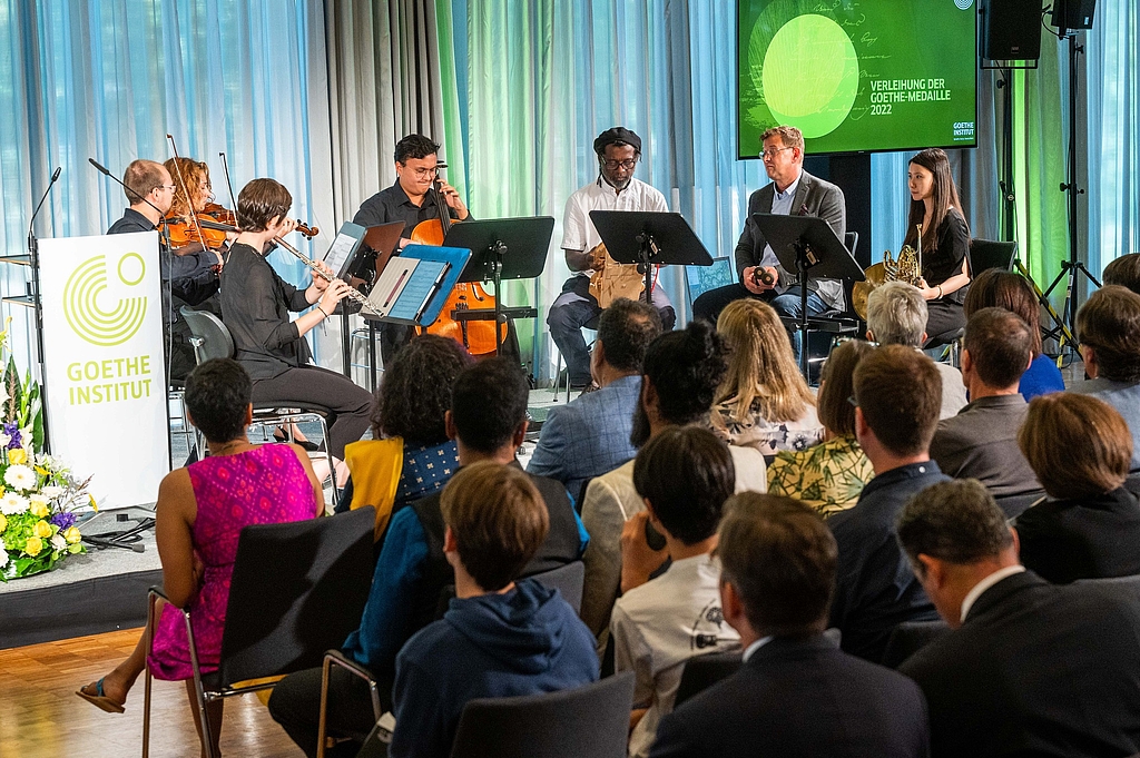 Das Ehrenzeichen der Bundesrepublik Deutschland wurde von der Präsidentin des Goethe-Instituts Carola Lentz in Anwesenheit von Außenministerin Annalena Baerbock verliehen. Prof. Pinto kuratierte bereits zum zehnten Mal das Musikprogramm. Aufgeführt wurde Musik von Christoph Baumgarten und Bernhard Bleibinger.