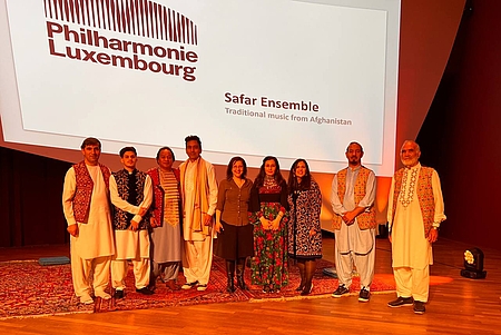 Im Jahr 2012 entstand in Zusammenarbeit mit der HfM das Projekt "Safar" und markierte einen großen Fortschritt in der Wiederbelebung afghanischen Musikerbes. Auch nach der erneuten Machtübernahme der Taliban in Afghanistan bleiben die Meistermusiker des exilierten ANIM (Afghanistan National Institute Of Music) aktiv und kooperieren über ganz Europa hinweg. Die Anstrengungen afghanische Musikerinnen und Musiker zu unterstützen, ihr Erbe aufrechtzuerhalten und ihre Kenntnisse weiterzugeben haben sich gelohnt und so konnte man am Mittwoch, den 24.05., ein großartiges Konzert in der Philharmonie Luxemburg hören.