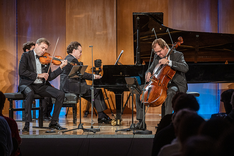 Von Kissin wurden zwei Kompositionen aufgeführt, sein Streichquartett op. 3, gespielt vom Weimarer "Gropius-Quartett" (drei der Mitglieder sind Professoren an der Universität) und sein neues op. 6, ein Klaviertrio, gespielt von den Professoren Friedemann Eichhorn, Violine, und Wolfang Emanuel Schmidt, Cello. Kissin selbst saß am Klavier.