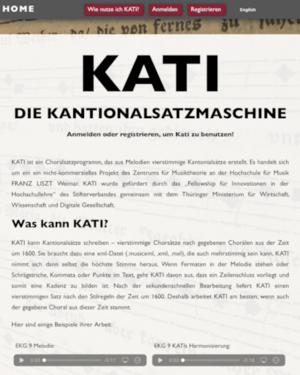 Künstlerische Projekte und Förderprojekte für Innovationen in der Hochschullehre Barockfestival "Güldener Herbst" - Junges Podium (2024) Foto: Guido Werner Walzer im Stil von Johannes Brahms - komponiert von Studierenden der HfM FRANZ LISZT Weimar (2023/2024) Bild: Willy von Beckerath - Brahms am Flügel / Wikimedia Commons (gemeinfrei) Musik-Automat (2024) Foto: de.123rf.com KATI - Die Kantionalsatz-Maschine (2021) Digitales Übeprogramm Musiktheorie (2021) Digitales Übeprogramm Gehörbildung (2021) Praktische Gehörbildung (2021) Liszt-Fragmente