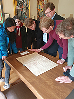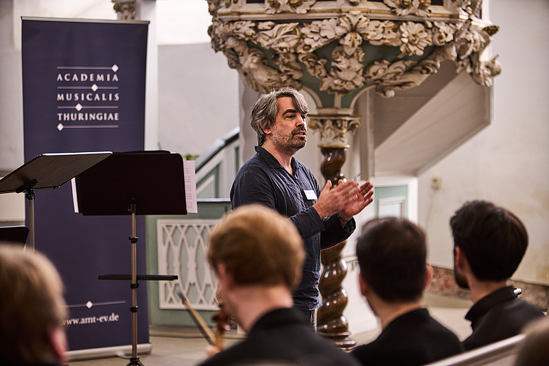 Am 18. April unternahmen Studierende mit Prof. Jörn Arnecke eine Exkursion nach Meiningen. Unter Führung der Musikwissenschaftlerin Dr. Maren Goltz, Kustodin der Sammlung Musikgeschichte, durften sie Abschriften von italienischen Kantaten aus dem 18. Jahrhundert untersuchen und die Musik probeweise in der Schlosskirche zum Erklingen bringen. Im Sinne einer künstlerischen Forschung analysierten die Studierenden die musikalische Textur und komponierten in den darauffolgenden Wochen neue Werke im gleichen Stil.